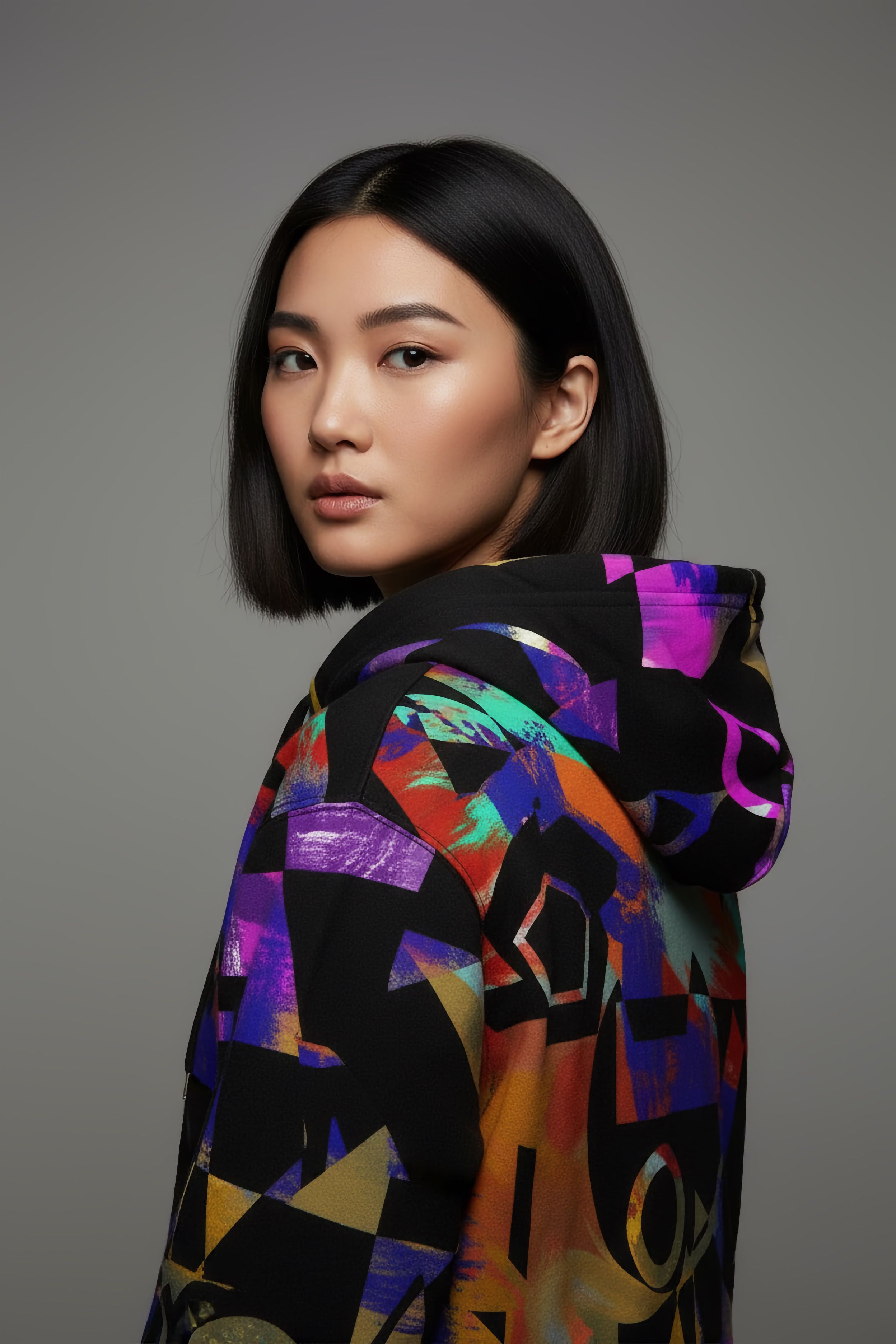 フロント・バック・フード・袖まで、すべてがキャンバス。左右非対称の構成で、角度によって印象が変わり、どこから見られても強い存在感を放ちます。ジップ付近には小さなブランドシンボルを忍ばせ、アートの中の“サイン”としてさりげなく配置しました。